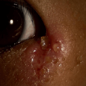 □ 鼻の先にも発疹(ハッチンソン徴候)